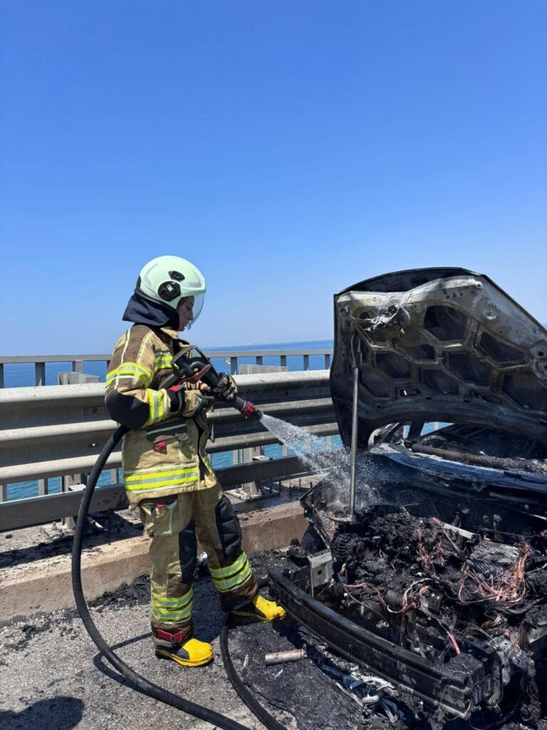 15 Temmuz Şehitler Köprüsü’nde seyir halinde olan metrobüsün motor bölümünde yangın çıktı. Alevleri fark eden metrobüs sürücüsü, yolcuları tahliye ederek